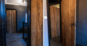 In 2021 kregen we de vraag om vier panelen te vervaardigen van de karaktervolle houtsoort Barnwood Robuust. Deze panelen, met hun stoere en doorleefde uitstraling, vormen een uniek element in ieder interieur. De klant koos ervoor om de panelen zelf te verwerken tot een scharnierdeur, wat resulteerde in een creatief en persoonlijk eindresultaat.